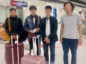 9/19 タイから3名の技能実習生、日本到着! September 20, 2025September 20, 2025 先日、9/19(金)入国前講習を終え、3人の技能実習生らが成田空港に到着しました。到着ゲートで監理団体ご担当者様の出迎えを受けた3人は、共に希望に満ちた笑顔に溢れ、「おはようございます!」と大きな声で元気に挨拶。これまで日本語や一般常識の習得に個人差はありましたが、自動車整備系の企業様に配属されてから、どん欲に仕事を覚え、日本語を向上させるよう尽力し、何よりも無病息災に日本の生活を楽しんでもらいたいと思います。頑張れ!